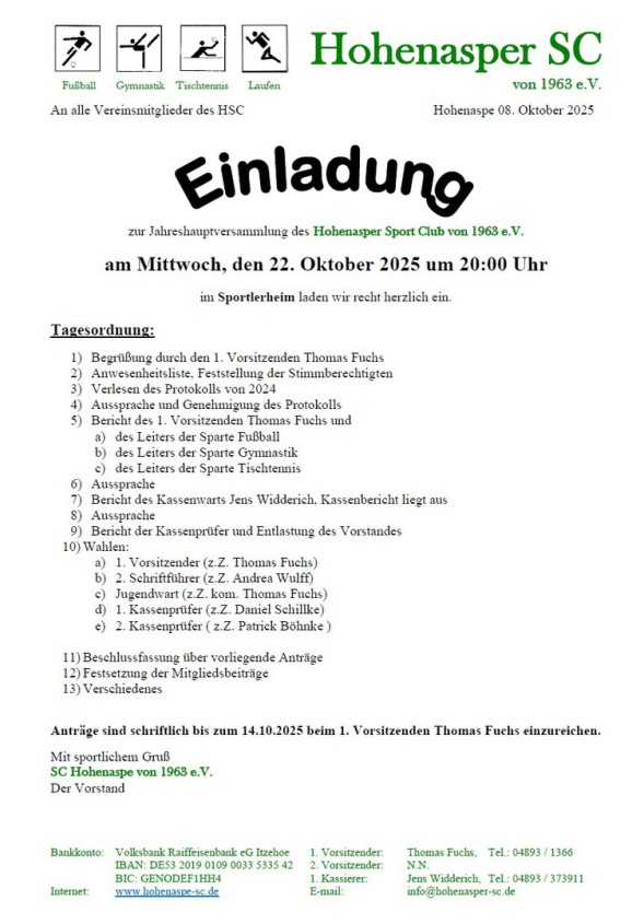 Hohenasper Sport-Club von 1963 e.V. Ansprechpartner: Thomas Fuchs Kontakt: Telefon: +49 4893 / 1366 Mobil: +49 162 / 98 58 552